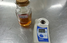현재 본 연구회에서 생산되는 시럽을 최대한 수분증발 시켰을때 당도가 73.9BRIX 또는 84BRIX까지 도달하게 되었습니다.